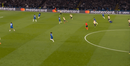 所以在攻守形势并未逆转的情况下,下半场的切尔西依旧占据着优势,可利用的空间随着人数优势显现: